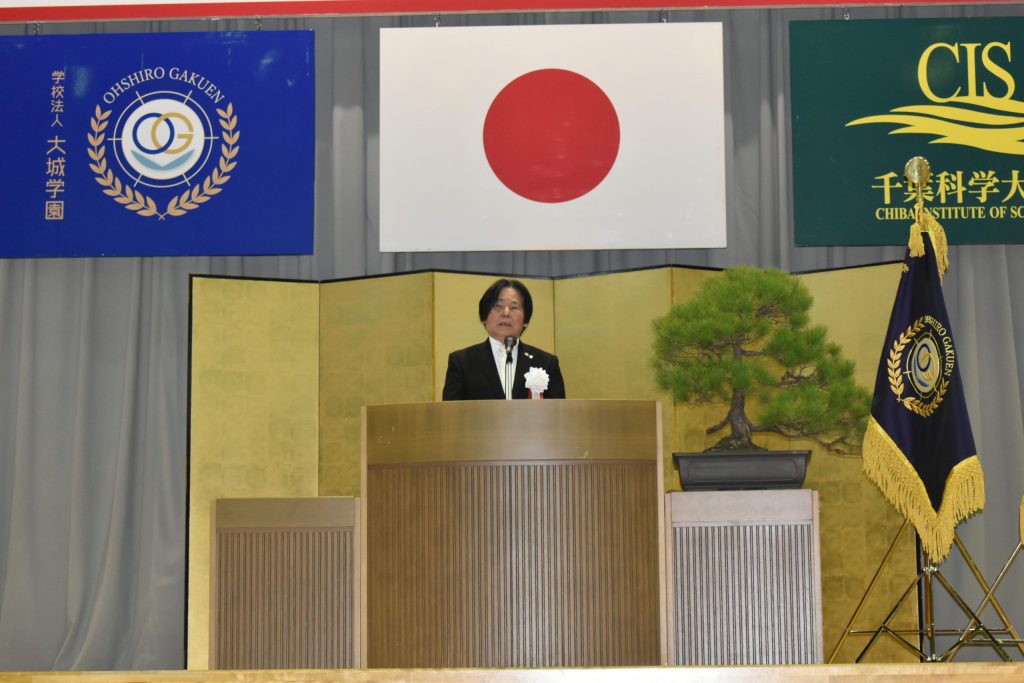 続いて、理事長より告辞が述べられ、本学の建学の理念や教育方針について紹介がありました。