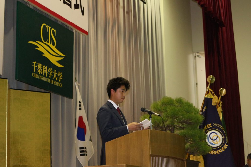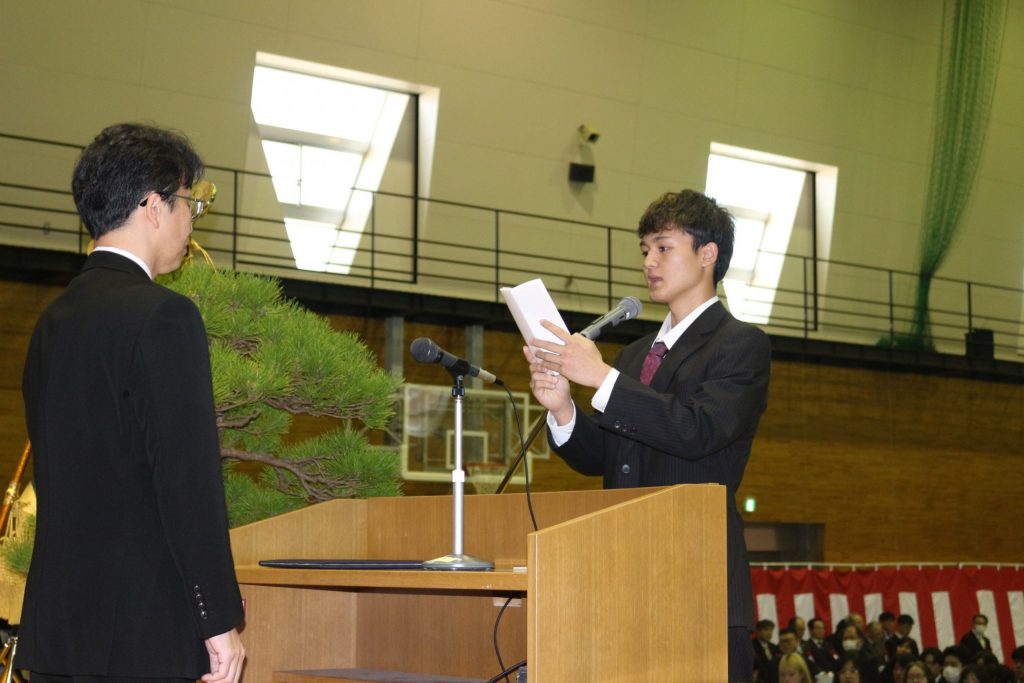 新入生代表が力強く宣誓を行い、これからの学生生活への決意を新たにしました。