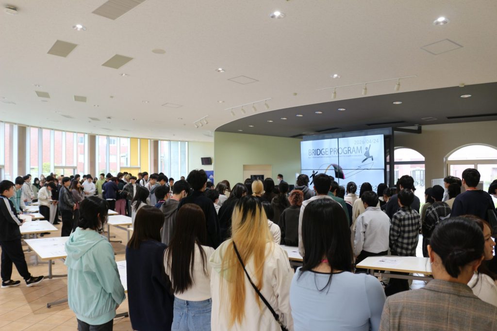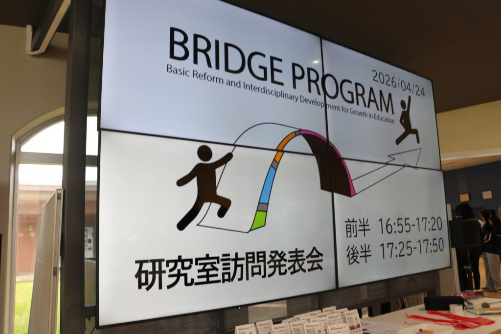 本学では、2026年4月24日(金)、BRIDGEプログラムの一環として、1年生による「研究室訪問発表会」を開催しました。