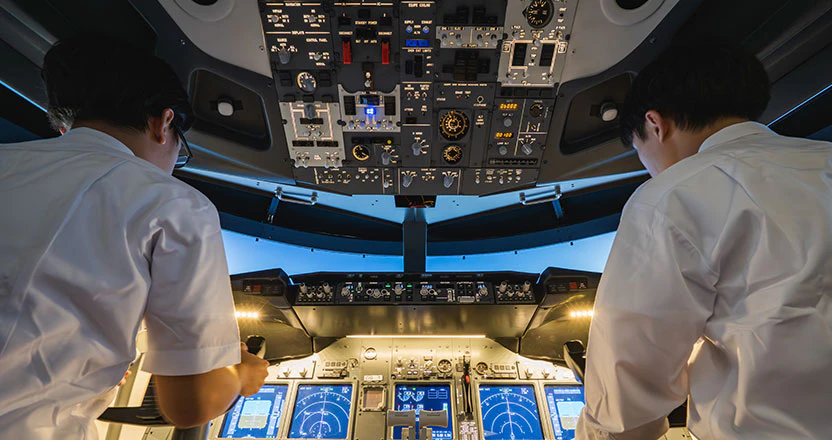 多くの航空会社で使われているボーイング737のFTDがあります。エアラインで行われるようなCRM、2MANコンセプトなどの訓練も行います。