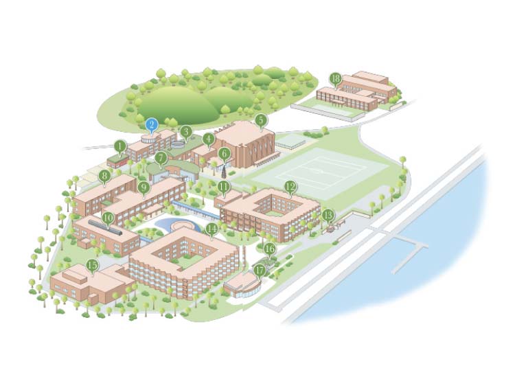 目の前にはマリーナが広がり、海風に乗って潮の香りが漂うシーサイドキャンパス。“健康・安全・安心”という時代のキーワードを学ぶ広大な敷地内には、学習の場はもちろん、スポーツ施設、憩いのスペースもたくさん設けられています。