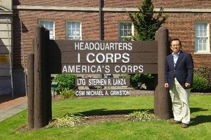 同先生は、現在もなお自衛隊と米陸軍との共同訓練にアドバイザーとして参加している。米軍からは自衛官勤務当時の功績により2回勲章を授与されている。退官後、平成27年4月から、本学の教鞭をとられている。再任用自衛官当時は、陸上自衛隊幹部学校で防衛法制教官であり、前職においても防衛法制担当者であった。