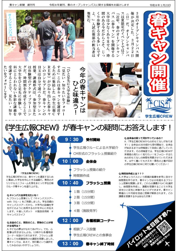 パイロットコースオープンキャンパスは、本オープンキャンパスと同日に開催します。