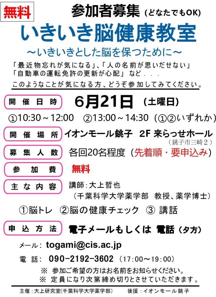 今年も看護学部がイオンモール銚子で「まちの保健室」を開催します