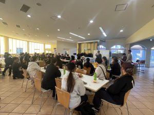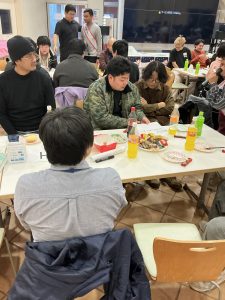 令和7年度第3回クリスマス交流会は、令和7年12月19日(金)午後3時から本学厚生棟にて開催され、留学生、日本人学生、教職員あわせて75名が参加しました。