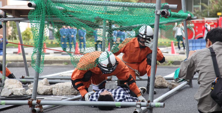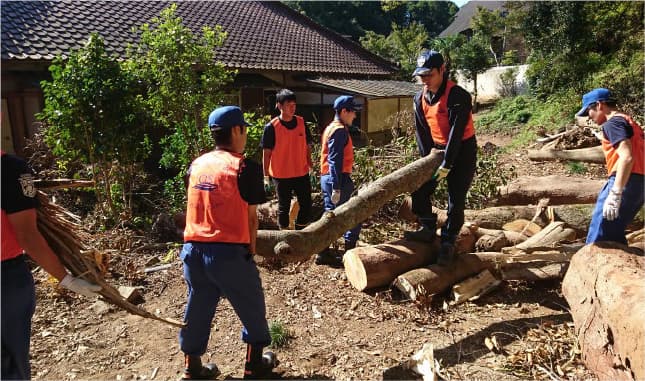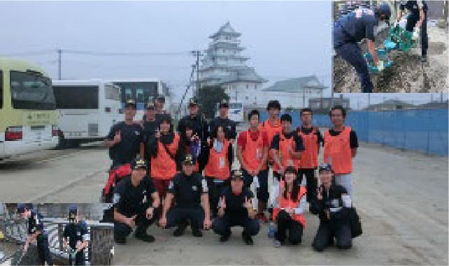 学生消防隊や地域防災、環境保全など、多くの学生が地域に根ざした活動に参加しています。地域や団体からの依頼をもとに、希望者は団体所属の有無に関わらず活動に参加できる体制が整っています。